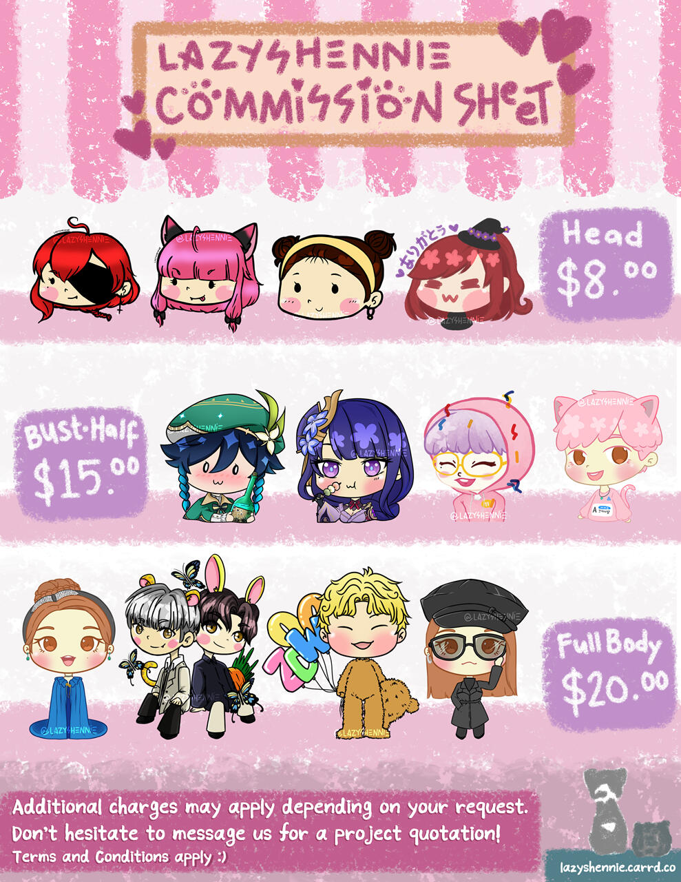 | Chibi | Bust / Half Body | $15 | 2-3 Days |